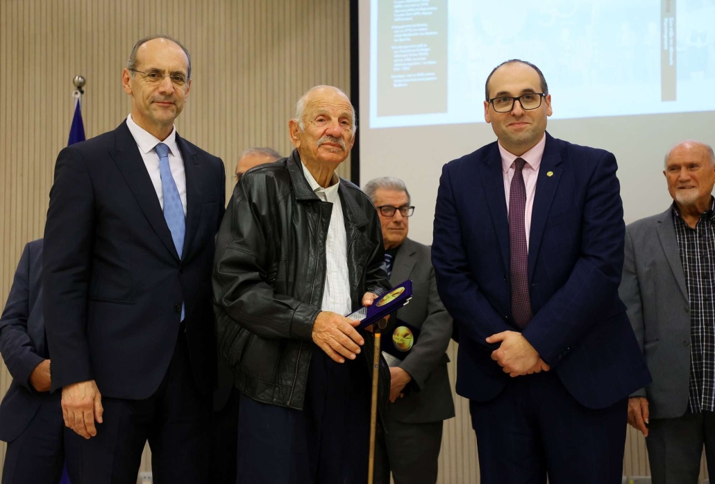 Ο Κώστας Αραβή (κέντρο), τον Ιανουάριο του 2024 στο Προεδρικό Μέγαρο, στην τελετή των 50χρονων της ΕΑΚ. Μαζί του, ο Υπουργός Δικαιοσύνης και Δημοσίας Τάξεως, Μάριος Χαρτσιώτης και ο πρόεδρος της ΕΑΚ, Ηρόδοτος Μιλτιάδους.